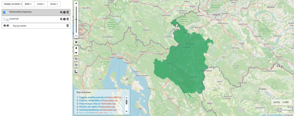 moguće je uvećati prikaz karte na sadržaj sloja. - Odabirom ikone za više informacija o sloju
